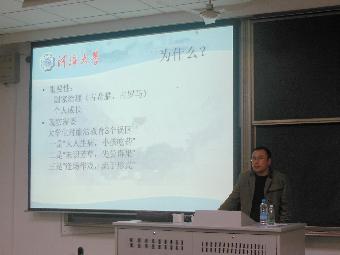 2014年11月13日,由环境学院发起的廉政诚信教育讲座在致高楼B211教室展开。此次廉政诚信教育讲座由环境学院党委陈杰书记主讲,14级辅导员曾莉老师以及环境学院全体新生参加。