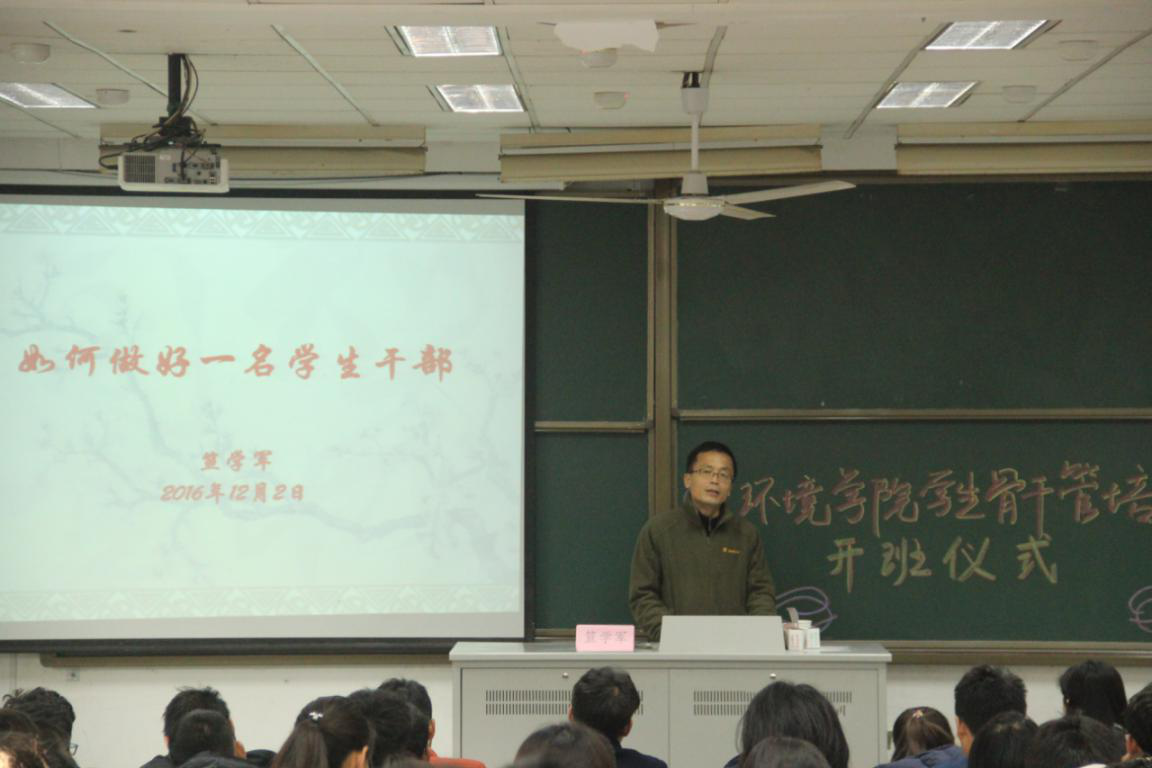 2016年12月2日早上8:00,环境学院于江宁校区致用楼117教室举办了学生骨干管培开班仪式。