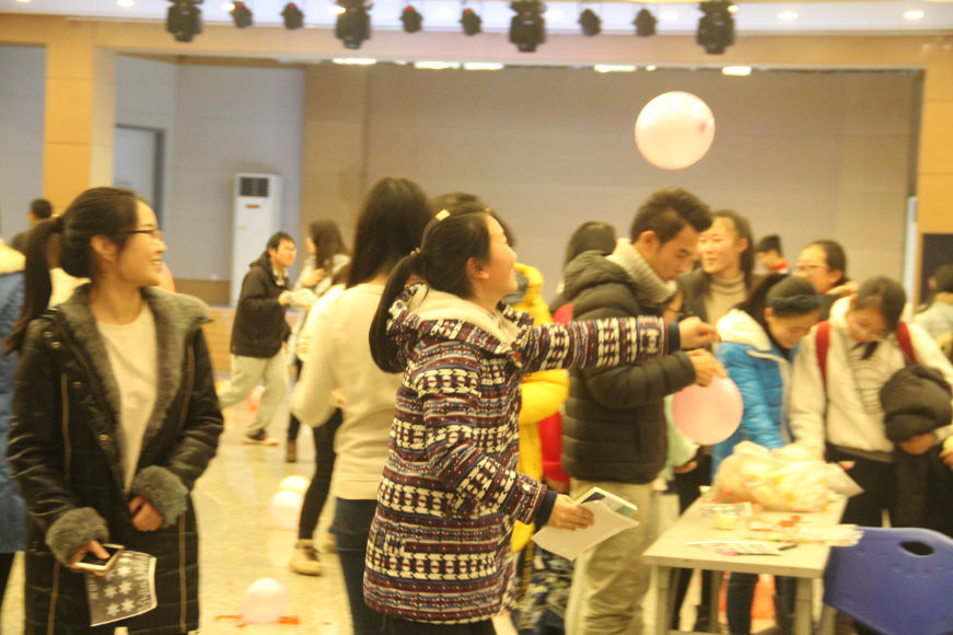 精彩的晚会节目欣赏过后,文艺部的干事们立即清理桌椅,将十个游戏场地迅速搭好,同学们则跃跃欲试,期待着即将开始的有趣的游戏环节。很快,厅内被分成了十个区域,最中间的桌子上放满零食糖果供同学们自取,其它则进行着你画我猜,踩气球,接乒乓球等丰富有趣的游戏活动,每通过一项活动即可获得一个通关印章,集满十个更有神秘奖励。如此“诱惑”引得同学们穿梭于各个场地,挑战各种游戏。场上气球的炸裂声,赢得游戏的欢呼声不绝于耳,而请文艺部部长唱歌,年级长跳舞等助兴的“大冒险”游戏引来阵阵笑声,思源楼多功能厅迎来了真正的疯狂。