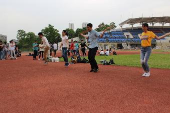 2017年5月11日下午4点,环境院2015级积极响应“三走”号召,走下网络,走出宿舍,在东操场开展跳绳、呼啦圈比赛。比赛开始,同学们热情高涨,呼啦圈与跳绳比赛相继开始。3分钟内呼啦圈不掉者即为获胜,参赛同学摩拳擦掌,引来一众同学围观。比赛激烈异常,为了加大难度,两个呼啦圈同时转3分钟不落地即为冠军。经过激烈的角逐,最终来自给排水的丁春运同学与环境专业的张靖涵同学难分伯仲,并列第一。