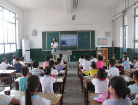 在与老师亲切交流,与同学们说明来意后小组成员正式走进教室为孩子们讲解环保知识。孩子们认真听讲的样子,深深地打动了每一个成员。