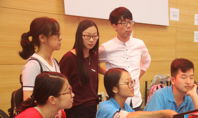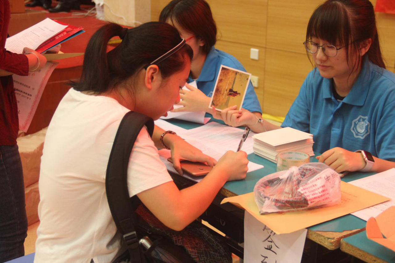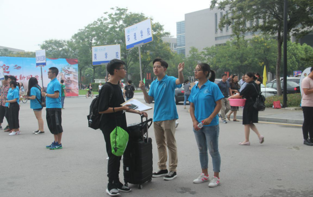 在东门和南门的同学主要负责导引的工作,他们举着“环境学院”的牌子,为学生和家长提供帮助;在文体中心的同学提前准备好了新生入学所需的各项材料;在骏园接待点工作的同学则为新生更方便的入住宿舍而努力着。