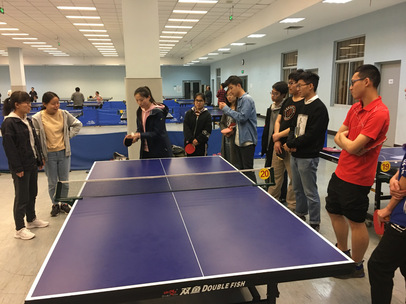 本次课程面向环境学院16,17级全体学生,具有小班教学的特色,20多个人组成了一个兴趣班,这项课程的主讲人是来自2016级给排水二班的李雯玥。她是河海大学高水平乒乓球运动员,获得国家二级运动员称号,并于去年九月份获得全国大学生乒乓球锦标赛丙组女子团体第三名,具有扎实的基本功。