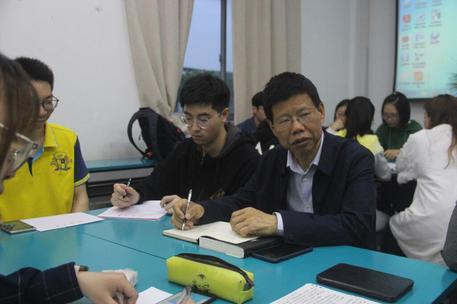 孙其昂教授,思想政治教育专业和社会学专业的博士生导师,河海大学社科联副主席、河海大学马克思主义学院学术委员会主任、河海大学马克思主义理论学科主任,是国务院政府特殊津贴专家、也是第15、16 届南京市鼓楼区人大代表。在场同学都对孙教授的到来报以热热烈的掌声。