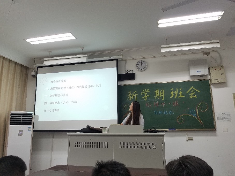 新学期伊始,为了使大家能以饱满的热情和积极向上的精神风貌投入到大三的学习生活,环境学院2016级各个班级都开展了主题班会,各班班会主要内容不谋而合。首先进行班委换届,紧接着由班长对班级自身情况进行分析,重点分析班级成员的学习成绩情况,强调要对成绩不达标同学的特别关照,并且制定了班级接下来的建设规划。