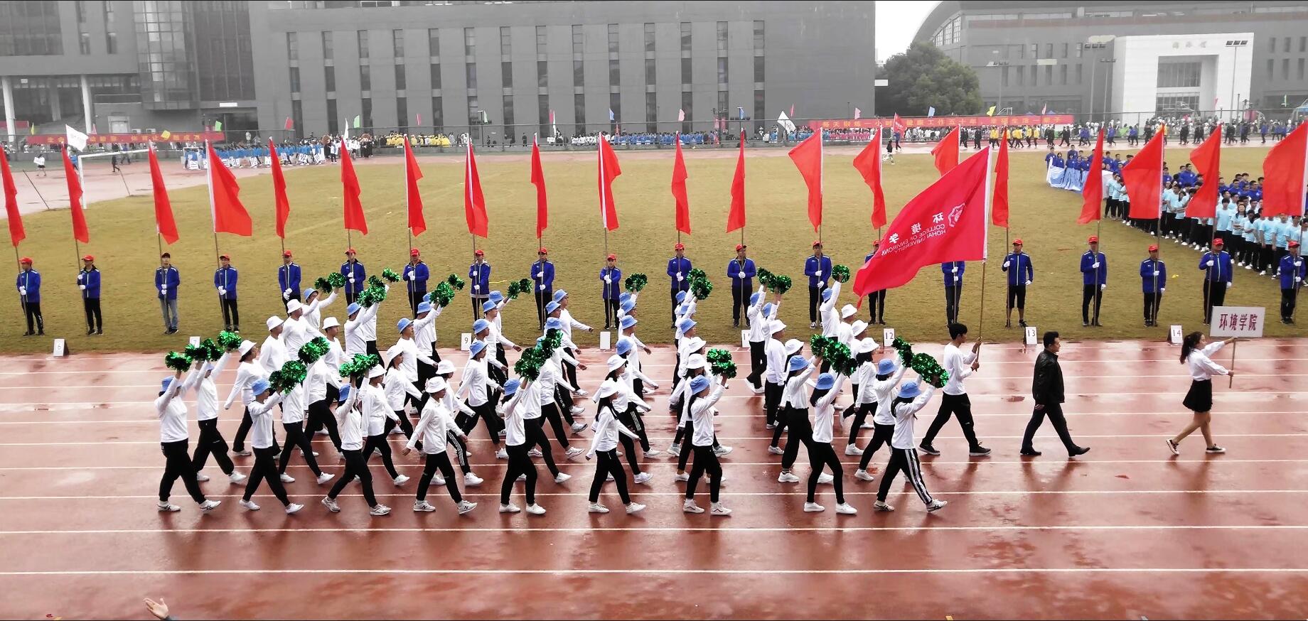 环境学院的队员们精神饱满,英姿飒爽;整齐的步伐踏着坚定,灿烂的微笑写着热情。我院党委副书记曹松祥也代表我院老师加入了方阵队列,足以彰显我院对此次校运会的支持与重视。优秀的环境学子们不仅是学术上的精英,也是运动场上的健儿。他们用有条不紊的队列变换展示决心,用拼搏进取的态度诠释时代的体育精神。操场上空嘹亮的口号声更是响彻云霄,“环境精英 敢闯敢拼 齐心协力 争创佳绩”是我们的口号,更是我们不断奋进的目标。我们坚信朝气蓬勃、团结一心的环境学院也必将在本届校运动会上争创佳绩。