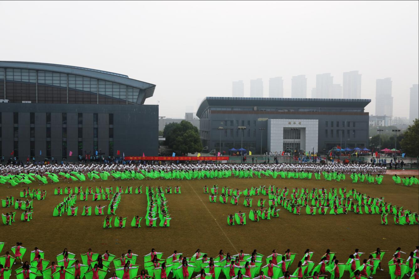 开幕式上,一千余名2018级本科新生表演了大型团体操《新的春天》,我院共有175人参加,他们不惧辛劳,每天晨起训练,也为这次精彩表演贡献出了自己的力量,他们代表着环境学子奋发向上的拼搏精神,彰显了环境学院团结一心的合作精神,为我院增光添彩,是环境学院的骄傲!团体操气势恢宏节奏明快,充分展示了河海学子青春洋溢的活力、朝气蓬勃的精神风貌、团结奋发的凝聚力和昂扬向上的风采,把开幕式现场气氛推向了高潮。第一场是由女子方阵带来活力四射、激情昂扬的《美丽的中国梦》,歌曲感染力十足,女子方阵也配合默契,她们一袭绿衣翩翩起舞恰似一片绿色的波浪汹涌翻滚,柔情万丈。接着由男子方阵带来的《奋斗年华》更是让水之子们深深的感受到了身为一名河海人的骄傲与自豪,在心中暗暗下定决心定要在最美的青春岁月中创造属于我们自己的芳华!最后由全体队员共同表演激情万丈的《跨越巅峰》,在今天这个幸福美满的日子里,让我们共同祝福我们亲爱的祖国走向繁荣富强!
