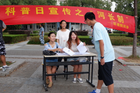 2018年9月15日中午11点,由环境学院科协策划并举办的2018全国科普日活动——河风海韵之河长制知识宣传活动于六食堂门口顺利举办。该活动面向全校学生,旨在让同学们更好地了解河长制的制度背景和基本原则等知识。