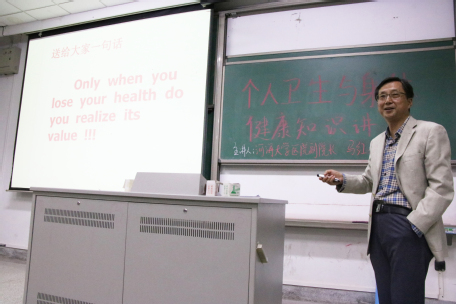 在讲座的结尾,马院长送给在座各位一句话:“Only when you lose your health do you realize its value!”同学们抱以热烈的掌声恭送马院长离场,此次个人卫生与身体健康方面知识讲座也取得了圆满成功。