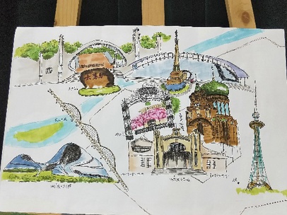 经过多日努力,来自各学院的11位参赛选手带着自己精心准备的绘画作品来到决赛现场。通过PPT讲解,选手们阐述了自己绘画作品的创作思路与内在深意,并为在场的所有评委与观众展现了他们心中所思的故乡。其中,2号选手傅语心采用素描与水彩相结合的方式,画面细致淡雅,为观众展示了身为六朝古都的南京独有的文化之美。她的作品《文化南京》给评委与观众留下了深刻的印象。梁雨嘉同学带来的作品《广西美食地图》色彩绚丽、搭配合宜,给人强烈的视觉冲击。蒋居钟同学所作的《思蜀道》,以其扎实的画功、巧妙的构思获得了评委们的一致好评。程熙媛同学的《建筑中的哈尔滨》以其精雕细刻的建筑图获得了评委的赞许。龚晓芳同学的《广东印象》以其清新淡雅的画风吸引观众。魏岱雯同学的《塞外明珠,山水梨城》为众人展现了不一样的新疆。所有参赛选手的作品都展现出了家乡的独特美,给在场的所有评委与观众带来了一场视觉盛宴。