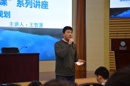 2018年11月27日,河海大学环境学院在西康路校区闻天馆108举办“信仰公开课-梦想公开课”系列讲座——学习经验交流与生涯规划篇,引导青年牢固树立实现中华民族伟大复兴的中国梦。本次讲座邀请了2006级环境工程专业的校友王智源博士作为主讲嘉宾,讲述“我的青春故事”,以其生动实践响亮发出“青年好声音”,发挥朋辈引航作用给2016级环境学院的同学们讲述未来在读研、出国、工作的一些经验,并给出相关的建议。