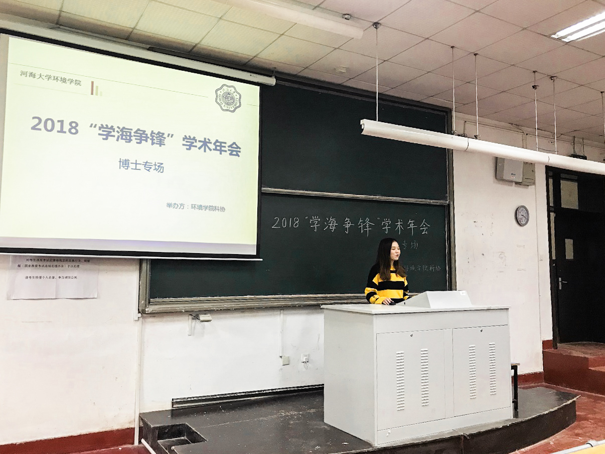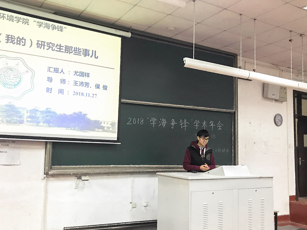 2018年11月27日下午,由环境学院研会研科协策划并举办的“学海争锋学术年会——博士专场”学术研讨会在水利馆B101教室举行。本次讲座的两位主讲分别是环境科学与工程的尤国祥和张弛,他们在学术研究均有颇丰的成果与经验。