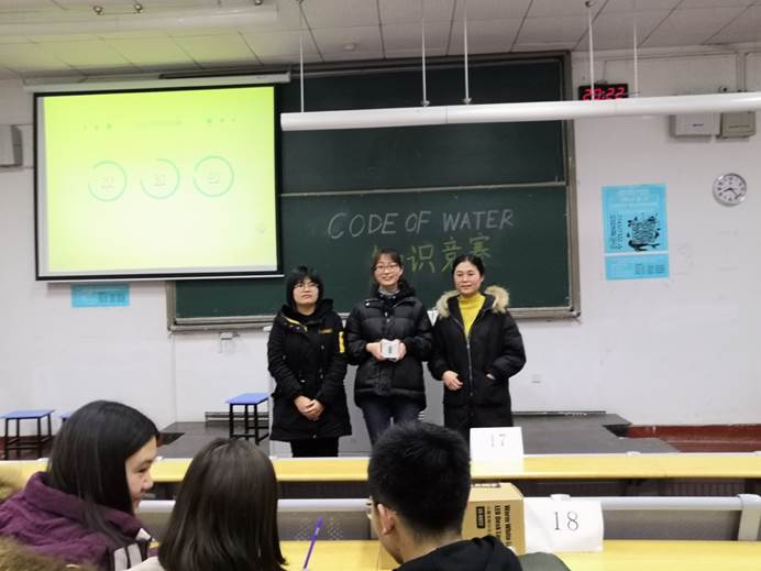 11月28日晚间6:30,由校研究生科协及环境学院研会科协组织的河海大学第一届“关注水环境,共享新生活”CODE OF WATER知识竞赛在本部环境楼B101拉开帷幕。本次活动迎来了由全校多个学院组成的总共30支参赛队伍,其中不乏江宁校区风尘仆仆赶来参赛的选手们。本次CODE OF WATER知识竞赛虽然是第一届活动,但仍取得了较为广泛的影响。