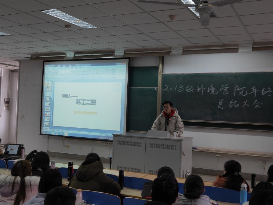 周郁同学以工作回顾、成果分析、班委总结及未来规范三方面总结本学期的工作。环工一班通过丰富的班级活动和严谨的工作安排,以及及时的问题分析和解决,使同学们都在学习和生活上有了不同的提升。
