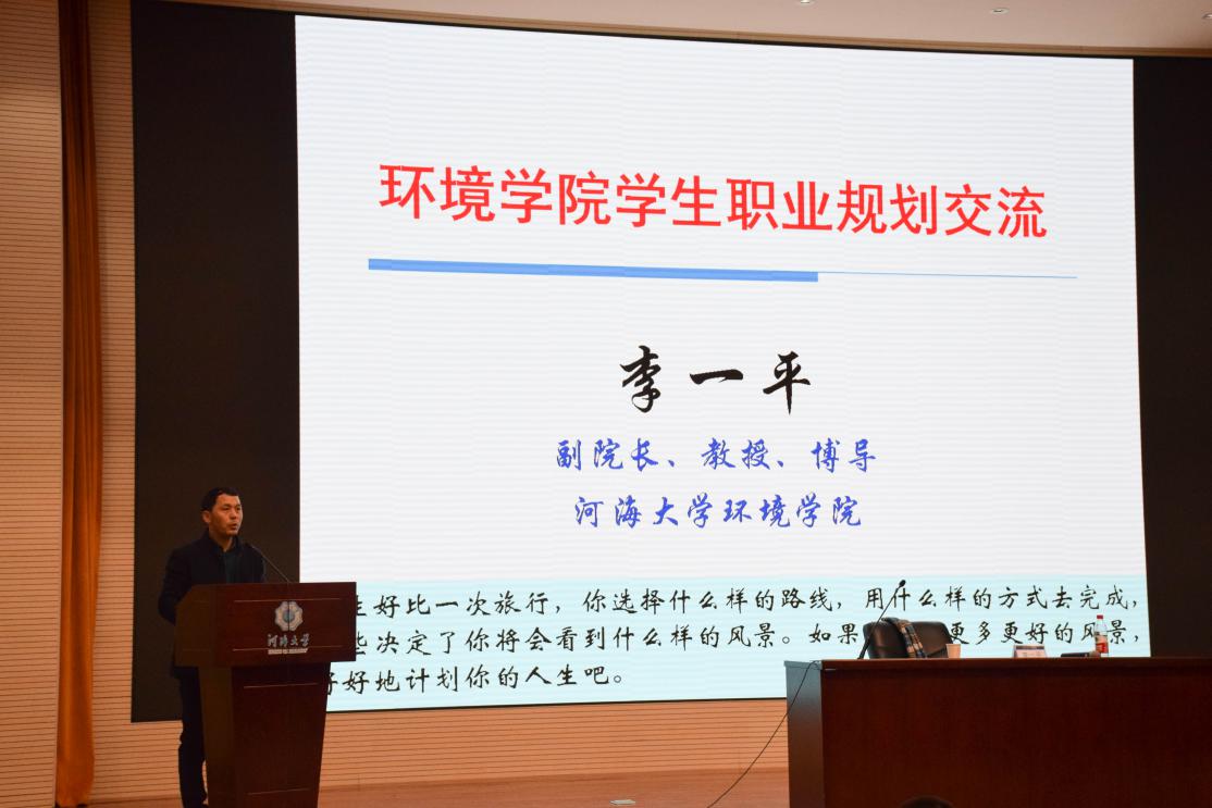 2019年2月28日晚六点半,环境学院考研就业指导大会在河海大学闻天馆108准时进行。新学期伊始,环境学院副院长李一平教授为16级本科生们开展了一次主题为“环境学院学生职业规划交流”的讲座。