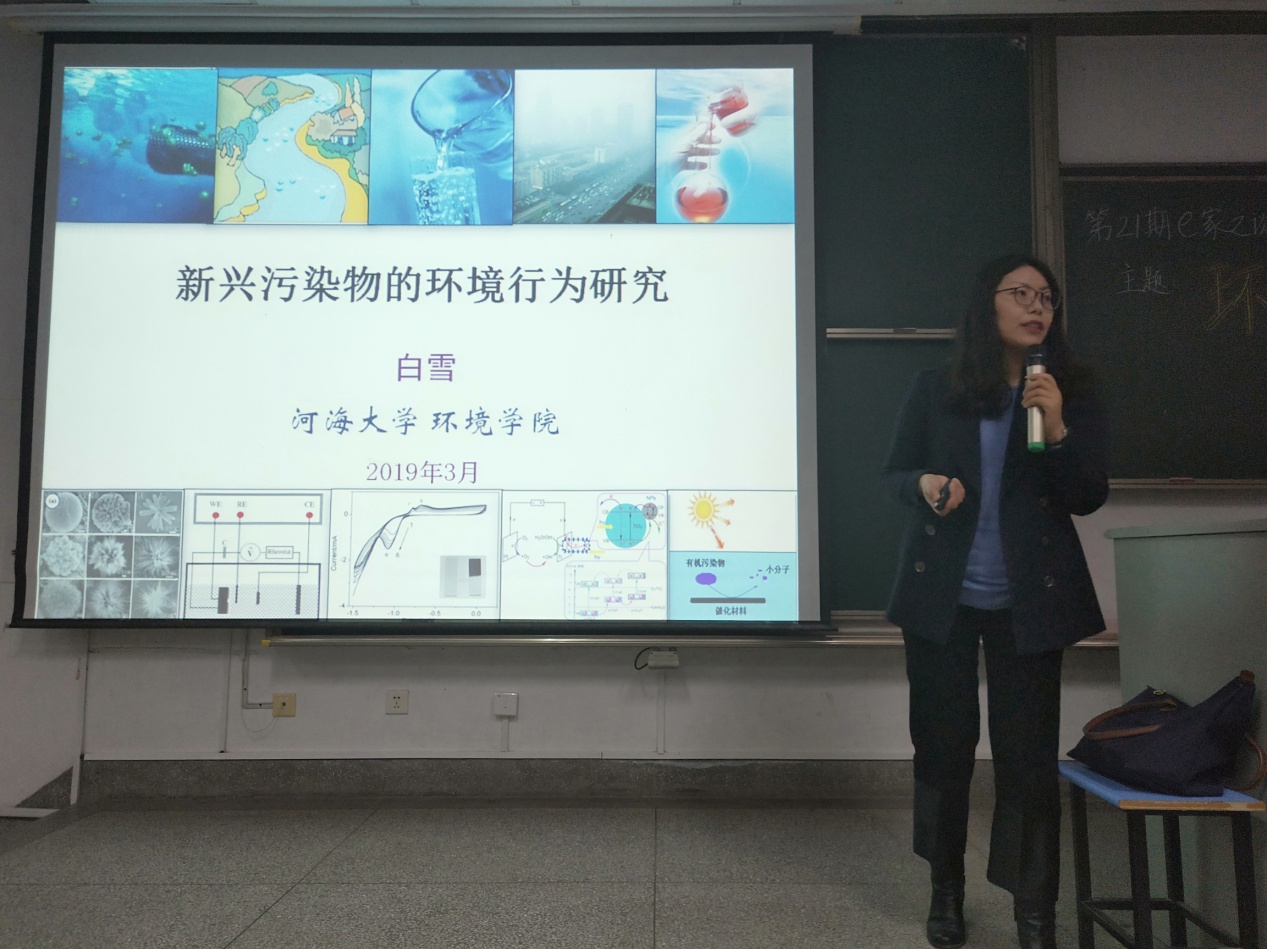 2019年3月30日晚18:30,由环境学院科学技术协会举办的第二十一期E家之谈——新兴污染物的环境行为研究交流在致用楼101教室成功举办。本次讲座的主讲人为环境学院教授白雪。