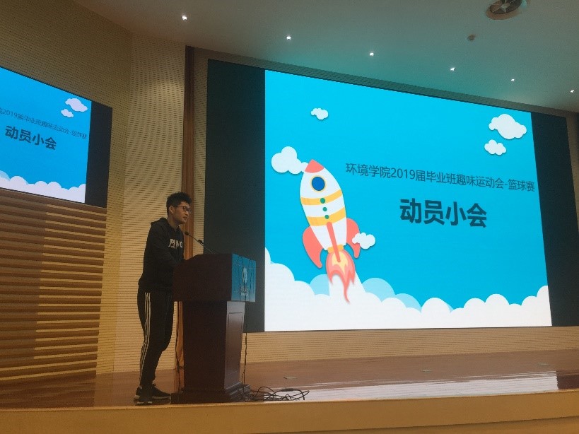 2019年5月8日上午,环境学院2019届毕业班趣味运动会暨毕业班篮球赛动员大会在闻天馆108顺利举办。本次动员大会旨在为为大家提供一次放松身心,走向户外的机会,通过在趣味性大于竞技性的比赛中缓解大家因为临近毕业而产生的焦虑和不稳定的情绪,通过同学们之间的配合与协作促进大家相互间的交流与沟通,并在比赛中展现班级的活力与凝聚力,最终让大家能够以最乐观、最积极、最健康的心态走向社会。