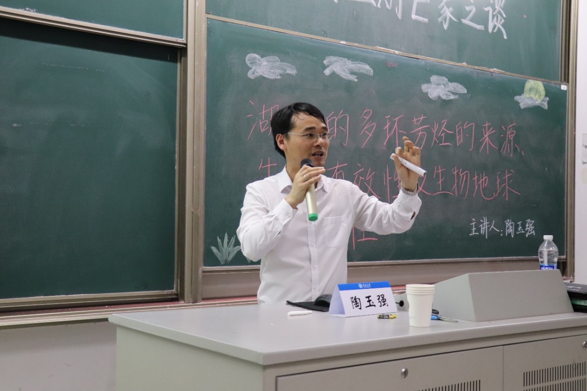 陶博士目前是中国科学院南京地理与湖泊研究所副研究员,江苏省杰出青年获得者,中科院院长特别奖获得者,中科院青年创新促进会优秀会员。陶博士主要从事湖泊污染化学,湖泊环境化学,湖泊环境地球化学等方面的科学研究。此次讲座,他分别对自己博士期间和目前所从事的科研工作进行了简要介绍。