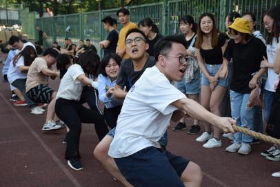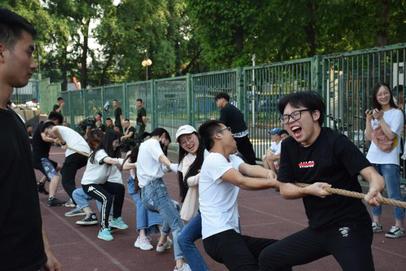 本次比赛以班级为单位,在辅导员金意倩老师和裁判的指导下,九个班级共同努力顺利进行了此次活动。同学们身着运动装在校本部体育场集合,拍摄年级合影后随即开始了拔河比赛。在准备过程中,各参赛选手纷纷摩拳擦掌,班级同学也都一起讨论着拔河的策略和技巧。4时30分,随着一声哨响,比赛开始了。班级啦啦队同学们都在一旁为自己班级加油助威,在周围整齐大声的口号声中,同学们都咬紧了牙关,随着啦啦队的口号奋力向后拉。赛场上气氛热烈,号子声、加油声此起彼伏。参赛员们个个使出浑身解数,配合默契。赛场旁同学们都为自己班级的参赛员们呐喊助威。一轮又一轮的对抗,坚持到最后的班级即使已经筋疲力尽,仍然使尽全身力气,做最后的拼搏。