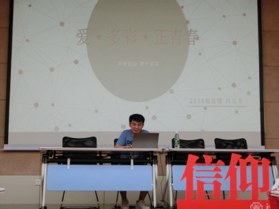 片刻休息后,十杰百佳成长故事交流分享会正式开始了。本次心灵交流会邀请到了环境学院15级辅导员王剑以及八位环境学院十杰百佳的优秀同学们。他们将围绕爱这一主题给台下的同学们分享他们动人的成长故事。