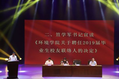 随后,笪书记宣读了《环境学院关于聘任2019届毕业生校友联络人的决定》,希望同学们即使踏出校园也不要忘记彼此的情谊。并且,王沛芳院长、笪学军书记、李一平副院长、和曹松祥副书记为各位校友联络人颁发了聘书。