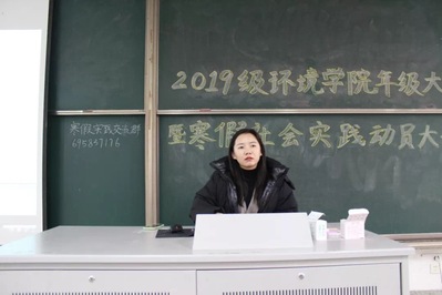 2019年12月30日下午2:30,环境学院2019级年级大会暨寒假社会实践动员大会在致用楼101举行。此次大会邀请到了环境院2019级辅导员扈雅璐和程萌老师为大家作动员。