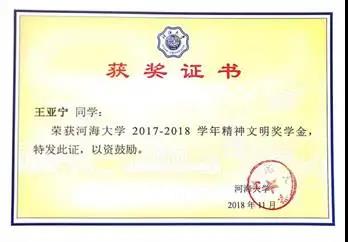 5.河海大学2017-2018学年优秀学生奖学金之“精神文明”奖学金