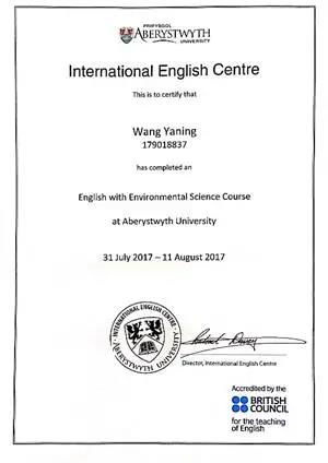 为了了解本学科知识、拓宽国际视野,王亚宁同学与环境专业其余部分同学于2017年7月前往河海大学环境专业合作交流院校,英国亚伯大学地球与环境学院完成环境科学专业学习。在实践课程中对水体微生物实验、土壤采样、重金属含量测定、森林地带测量等各个方面都有相应的学习。这一次出国交流不仅锻炼了动手实地采样能力和处理数据的能力,也进一步增强了王亚宁同学的团队合作意识和能力。大二暑假于2018年7月15日至2018年8月15日在江苏省环境科学研究院环境工程所进行为期一个月的实习。在实习过程中对环境专业的社会工作有了直接的接触和体会,也认识到了来自不同学校的优秀学长学姐,在和他们的交流中对未来职业发展的有更深刻的思考。