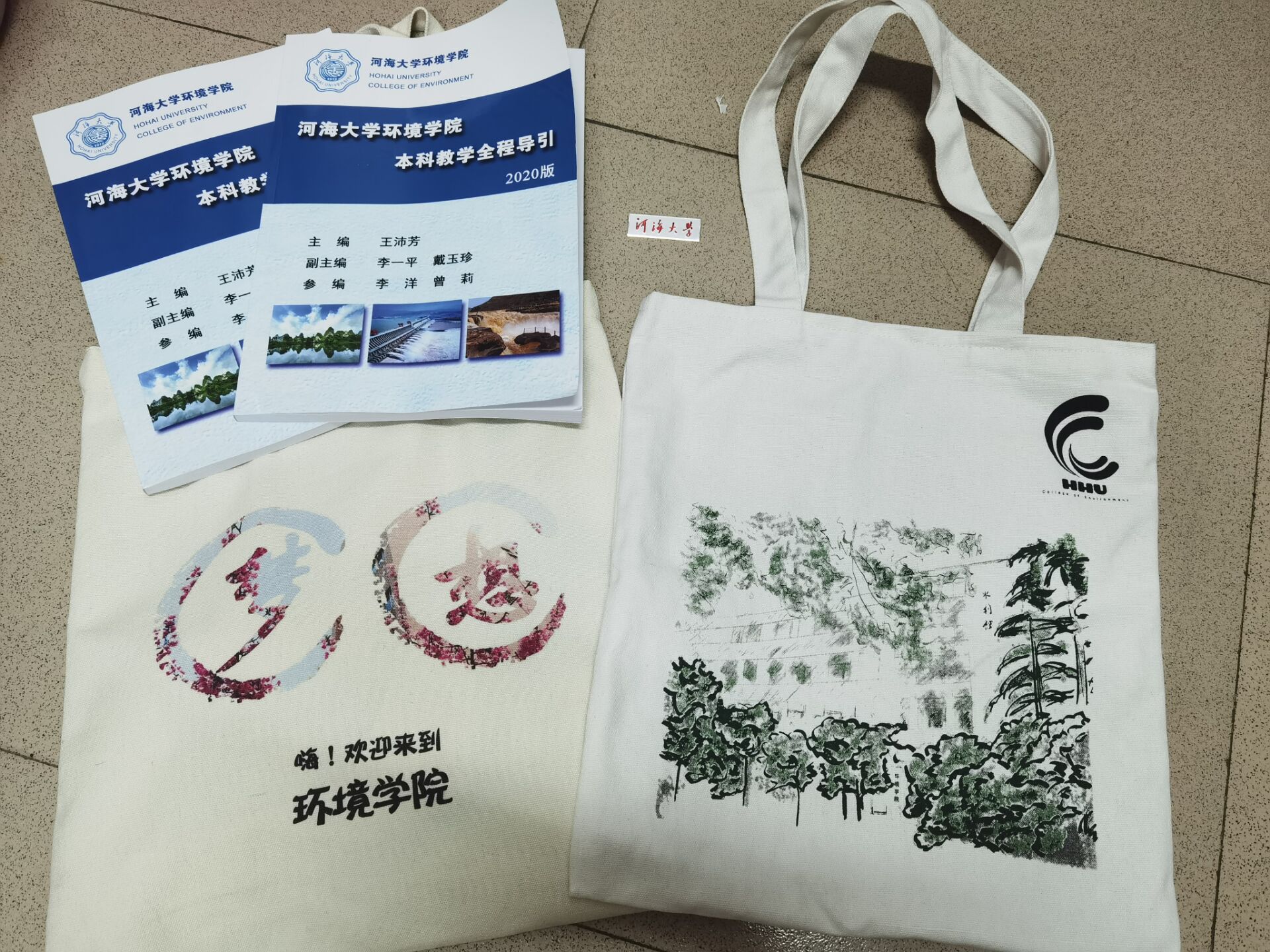在迎新现场,为了新生们能够拥有良好的生活环境,并更好的融入河海环境学院大家庭之中,学院为2020级新生们准备了定制大礼包。其中包括由环境学院定制帆布袋、学院标语-2020级定制可乐、新生入学手册等物品。同时,也不缺少宿舍物品如除霉喷雾和防疫物品如免洗洗手液。