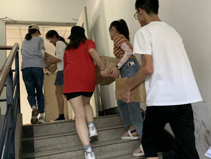 (助学导师为2020级新生搬运免洗洗手液与除霉喷雾)