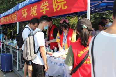考虑到一部分新生会在晚上入校,环境学院还安排了志愿者在南门及新生宿舍继续迎接新生,确保每位新生入学安全、便捷,充分展示出环境学院对新生的关怀与关爱。