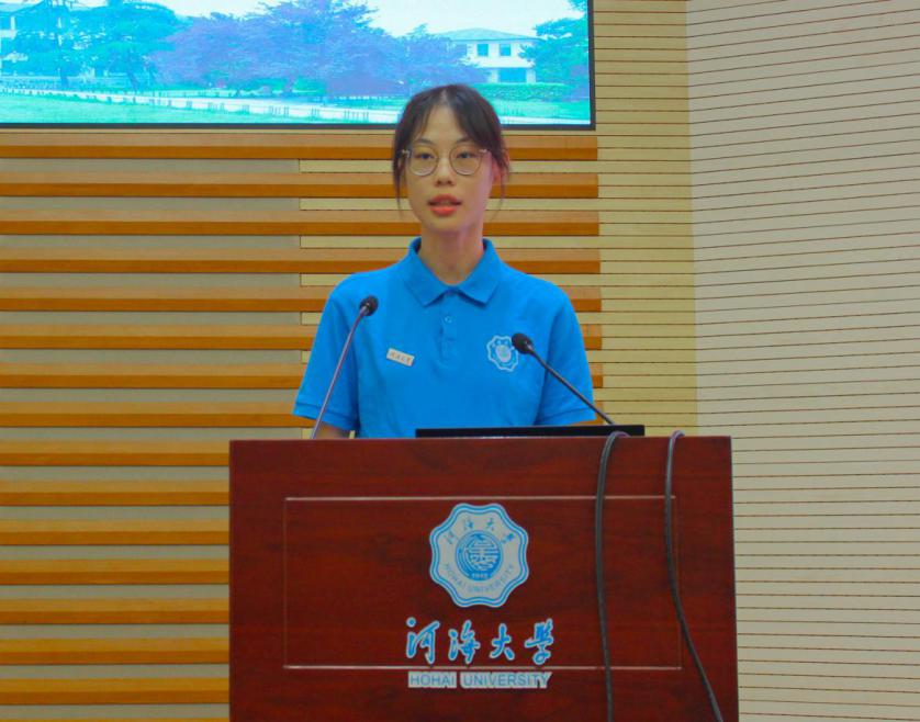 来自环境工程专业的龚怡宁同学作为新生代表发言。她以自己儿时的环保梦和自己在启航周的经历勉励同学们不负大学生肩上的责任,心怀感恩,砥砺前行,在学习和生活中攻坚克难,逐梦河海。
