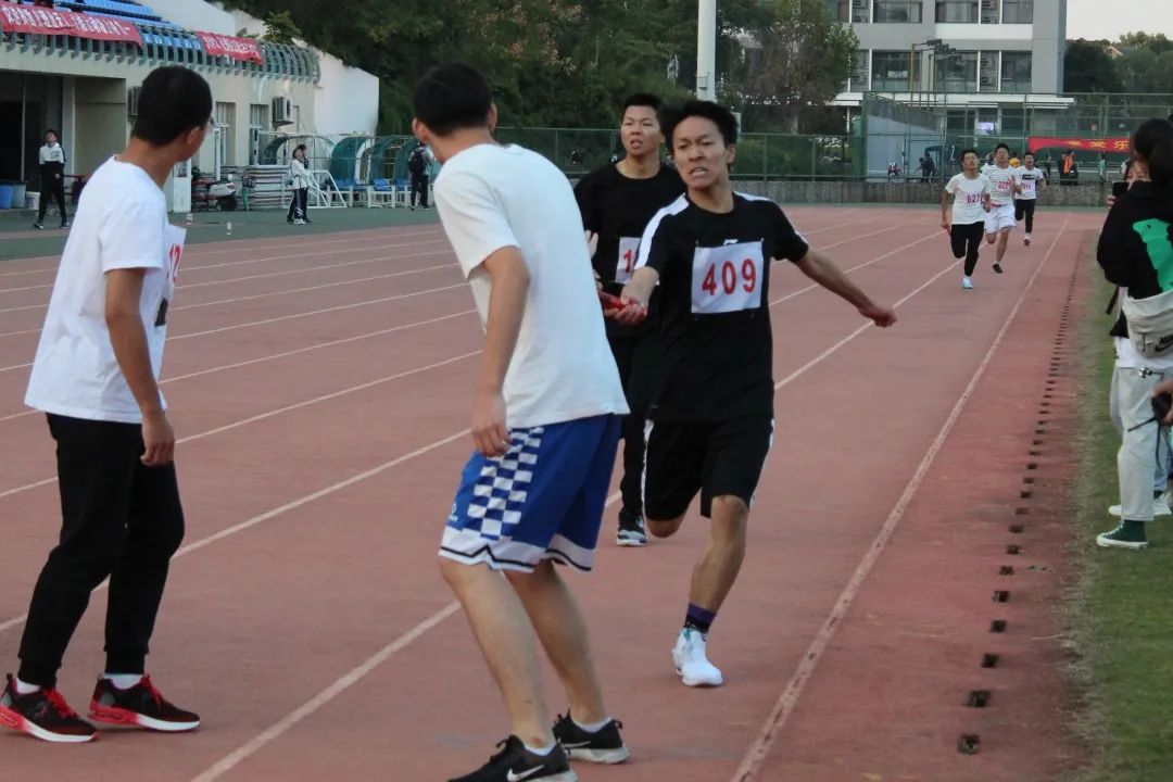 紧接而来的是男子4x100的比赛。环境院派出的队伍由孙继鹏、达娃次仁、万凯琦及钱昊亮同学组成,他们神采奕奕,自信满满,用专业的脚步、认真的态度和默契的配合赢得满场掌声。