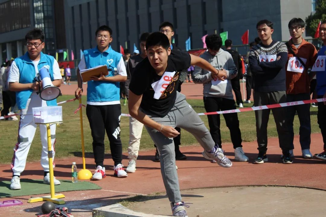 男子铅球决赛中,环境院运动员窦溱瑀同学、万凯琦同学、徐启晨同学为我院争光。伴着高挥的臂膀,铅球从手中划出圆滑的曲线,在草地上砸出了扎实的坑洼。其中窦溱瑀同学凭借高超的投掷本领荣获了第三名的好成绩。