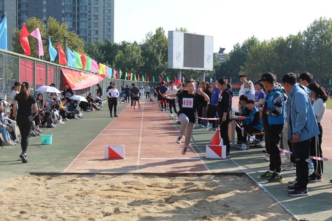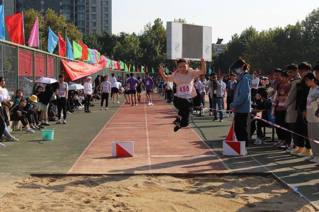 于此同时,在另一个场地中进行的女子跳远比赛中,詹玥同学、龚怡宁同学、韩清云同学也不甘示弱。她们身轻如燕,纵深一跃,便在天空中留下一道美丽的弧线。最终,詹玥同学和韩清云同学分别获得了全校第三和全校第五的好成绩。