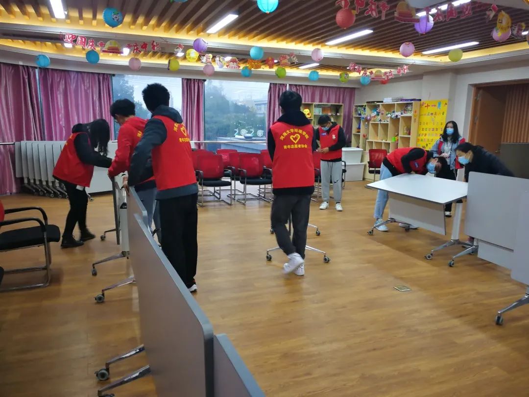 为了更好地展开本次活动,志愿者们到达后便和工作人员进行场地布置。