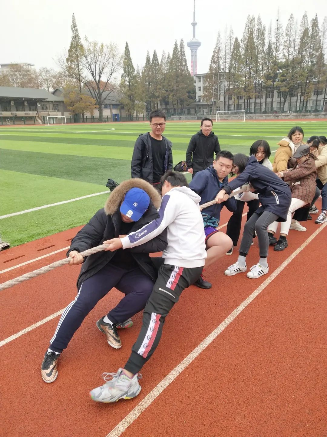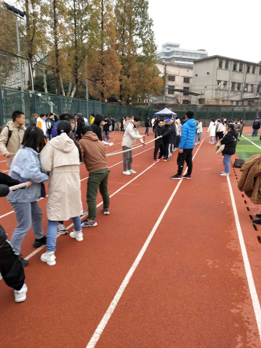 2020年11月28日下午,环境学院2017、2018级同学在河海大学西康路校区操场举办了拔河比赛,希望借此丰富全体同学的精神文明生活,促进同学们之间的交流,发扬团结精神,增强班级凝聚力,以营造互帮互助、友好和谐的学习生活氛围。