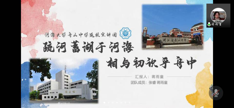第七组在宣讲前充分了解了同学们对河海大学各方面的感兴趣程度,制作了宣讲视频和PPT,结合团队成员的就读经历,通过实打实的介绍大学生活、学习经历,向学弟学妹们以第一视角的方式介绍河海大学,增加了宣讲的真实性和感染力。