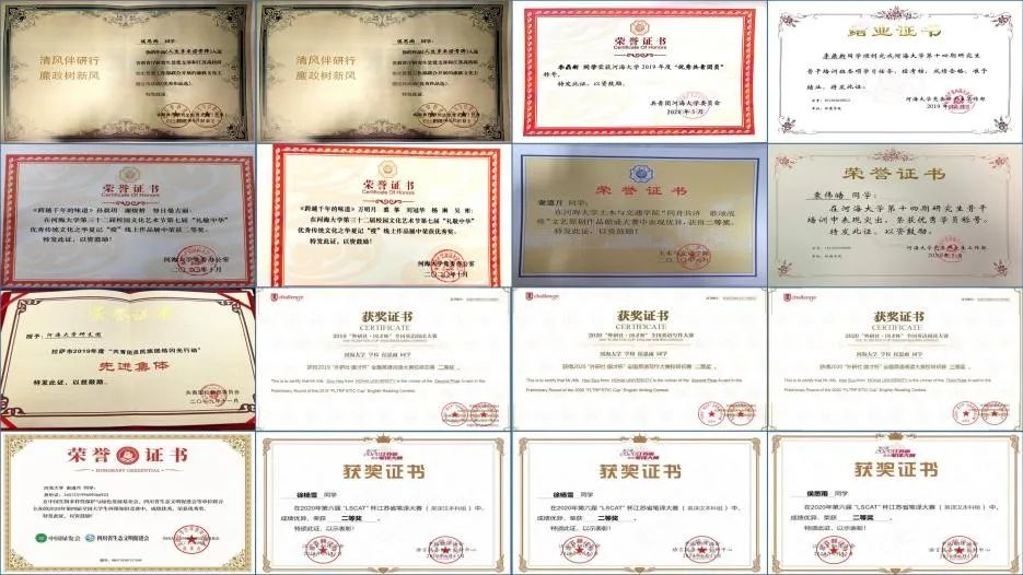 作为环境学院双一流建设学科的优秀班级,环科二班在学风建设上起到了很好的模范带头作用。班级同学发表SCI文章10篇,总影响因子为44.596。中文论文发表10篇,37人获得包括研究生国家奖学金、河海大学新生优秀奖学金杰出奖、2019级硕士研究生第一阶段学业奖学金等多项奖学金。在学科竞赛方面,环科二班也屡创佳绩,获得国家级奖项8项,省级8项,校级4项。主要包括“华为杯”第十七届中国研究生数学建模竞赛三等奖、第十三届认证杯数学建模竞赛三等奖、全国大学生英语竞赛A类竞赛二等奖、“LSCAT”杯江苏省笔译大赛二等奖。