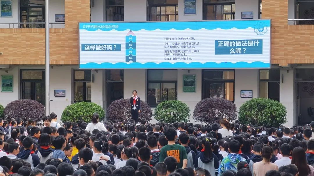随后,主讲人对小学生代表的发言进行总结。对节约用水的意义做了再次升华。