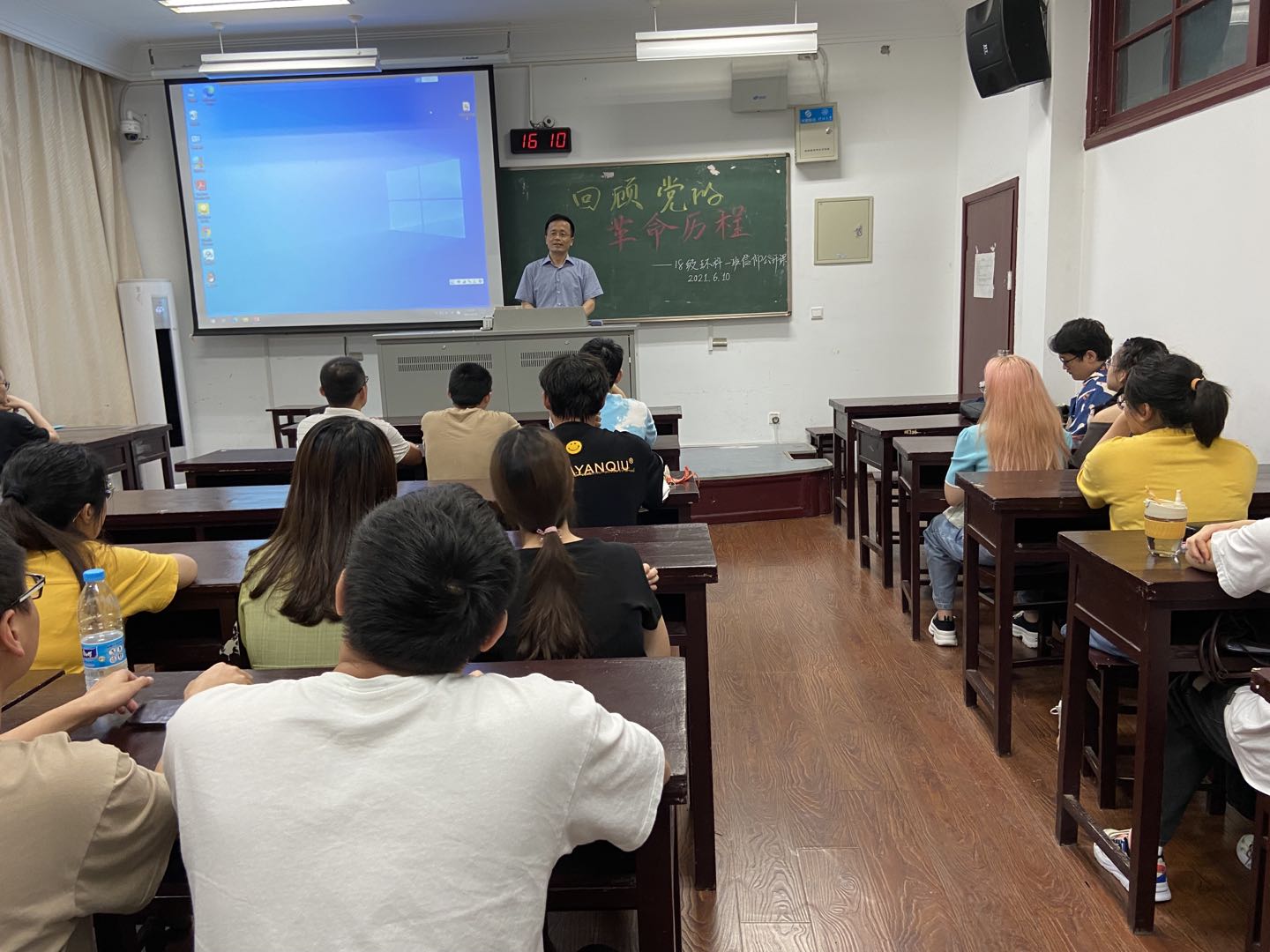 2018级团支书张磊博通过团支书上团课的方式与同学们一起回顾了党的百年发展历程,与同学深情的回顾了中国共产党在革命岁月中的发展和奋斗历程,与同学们一起受到了精神的洗礼。