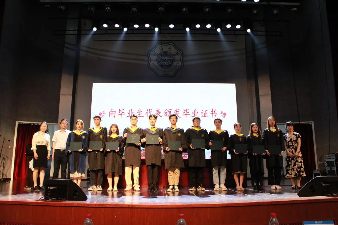 最后,优秀毕业生代表上台,由院领导们向他们颁发毕业证书,代表着2021届环境人的大学生涯正式落幕,环境学院2021届毕业典礼圆满结束。