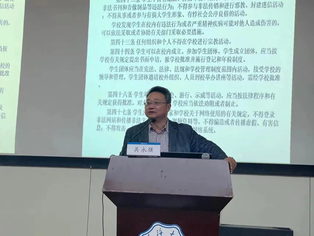 为增加环境院学生的安全知识,提高新生们的自我保护能力,培养学生珍爱生命的意识,2021年11月10月,环境学院召开安全教育讲座。河海大学保卫处吴永强处长与环境学子齐聚一堂,亲切交流。环境学院辅导员、全体本科新生和20级学生骨干参加了本次安全教育主题讲座。