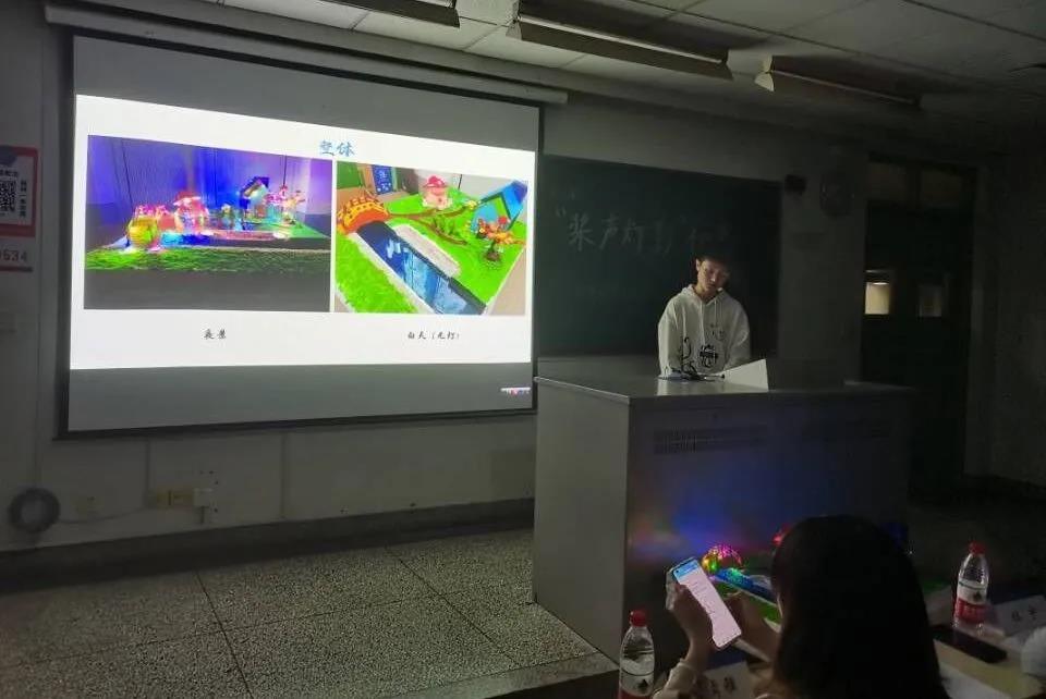 桨声灯影,取自中国著名文学大家朱自清的《桨声灯影里的秦淮河》,本次比赛旨在利用作品表现出对环保的关切、对于水与光以及结构之美的理解。参赛选手们结合比赛主题与环境学院的绿色环保宗旨,利用环保材料进行作品制作。同学们依次上台进行展示与答辩,沙盘作品展现出灯光的色彩绚丽、变化多端,并将水与光完美结合;船只作品在静水中展现其一定的稳定性,美观大方、颜色优雅。评委从环保、作品表现、难易程度和细致程度对参赛作品进行打分,与同学们交流作品内涵意义并给予鼓励。