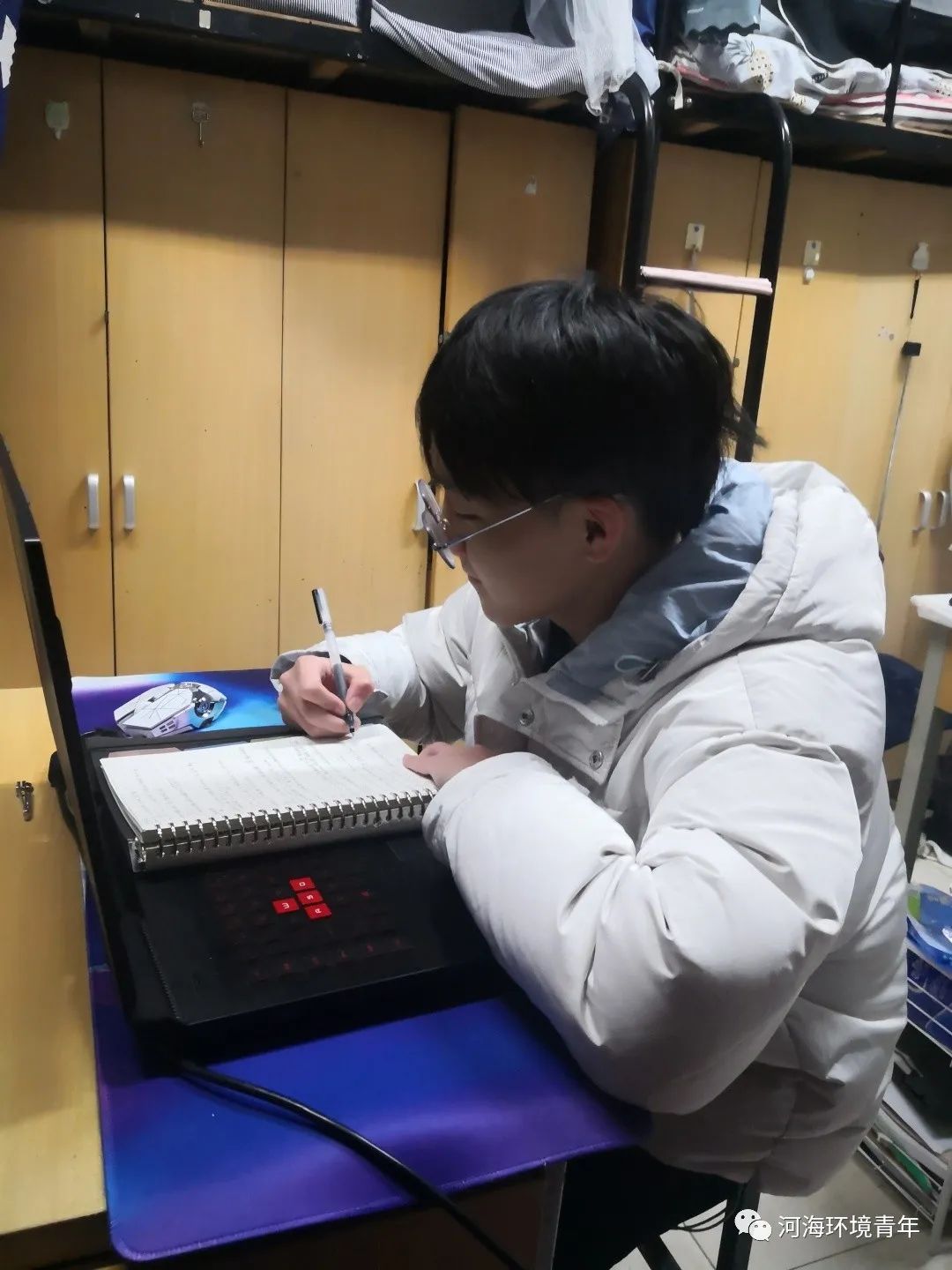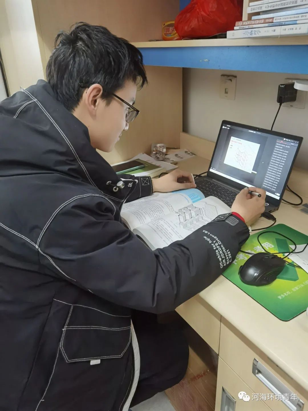 疫情阻挡了学生与教室的距离却阻断不了知识传递的脚步。环境学院的学生们虽然受疫情影响在宿舍学习,但仍然以一丝不苟的态度和精神饱满的状态迎接新学期。
