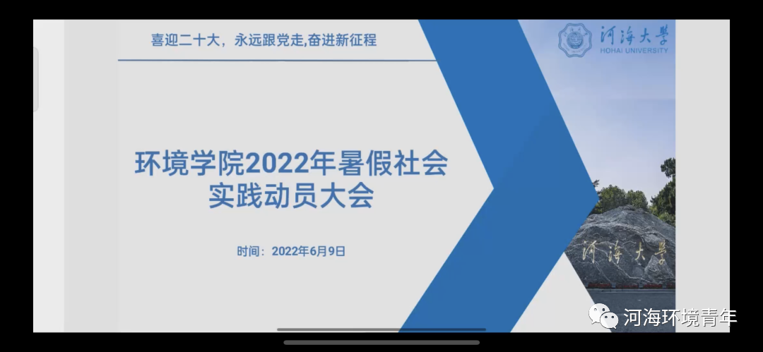 6月9日晚,2022年环境学院暑期社会实践动员会于线上举行。本次动员大会分为三个环节,分别是陈诗宇老师的实践动员,冯骞老师的实践指导和三位优秀学长学姐的经验分享。
