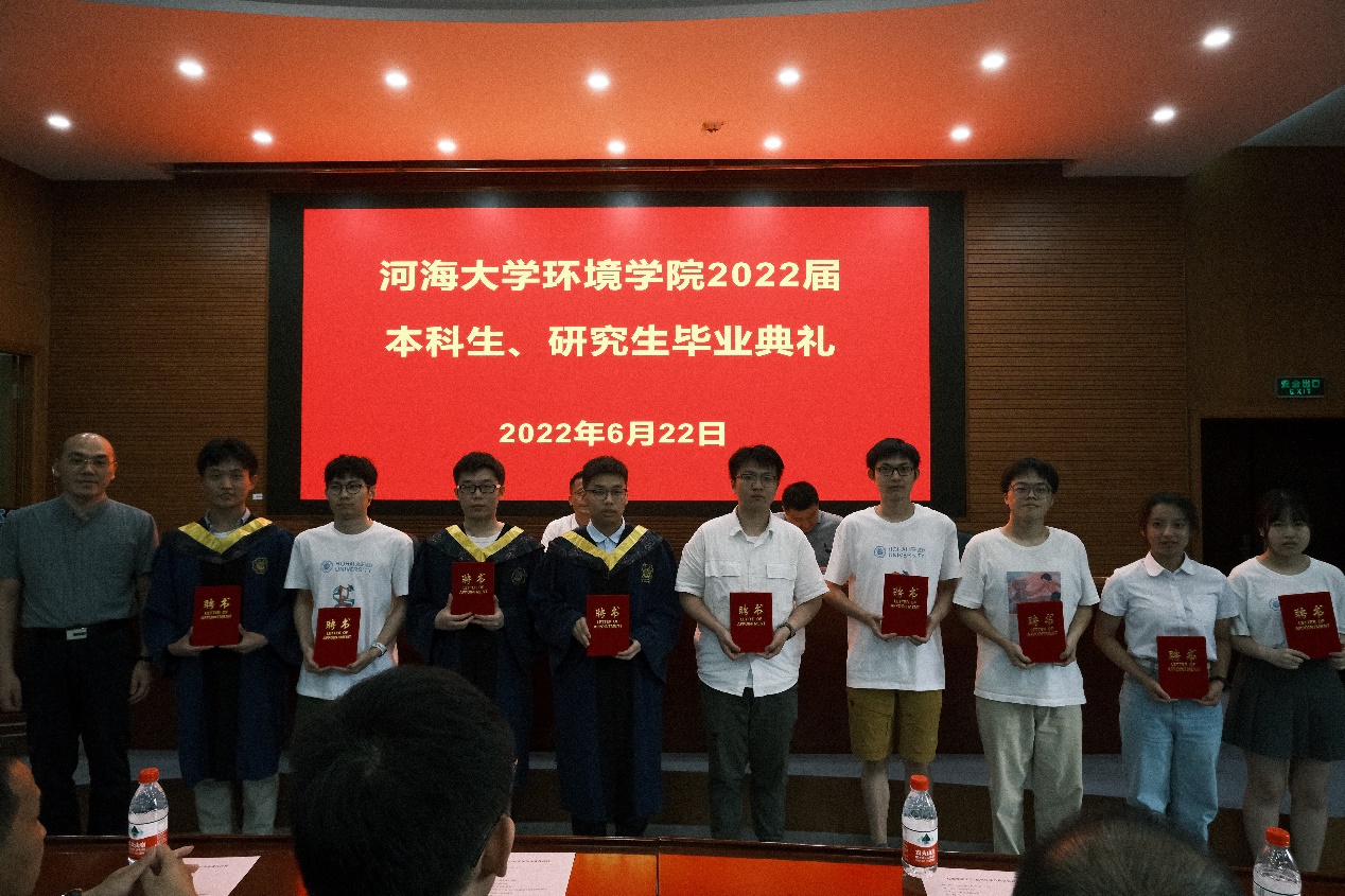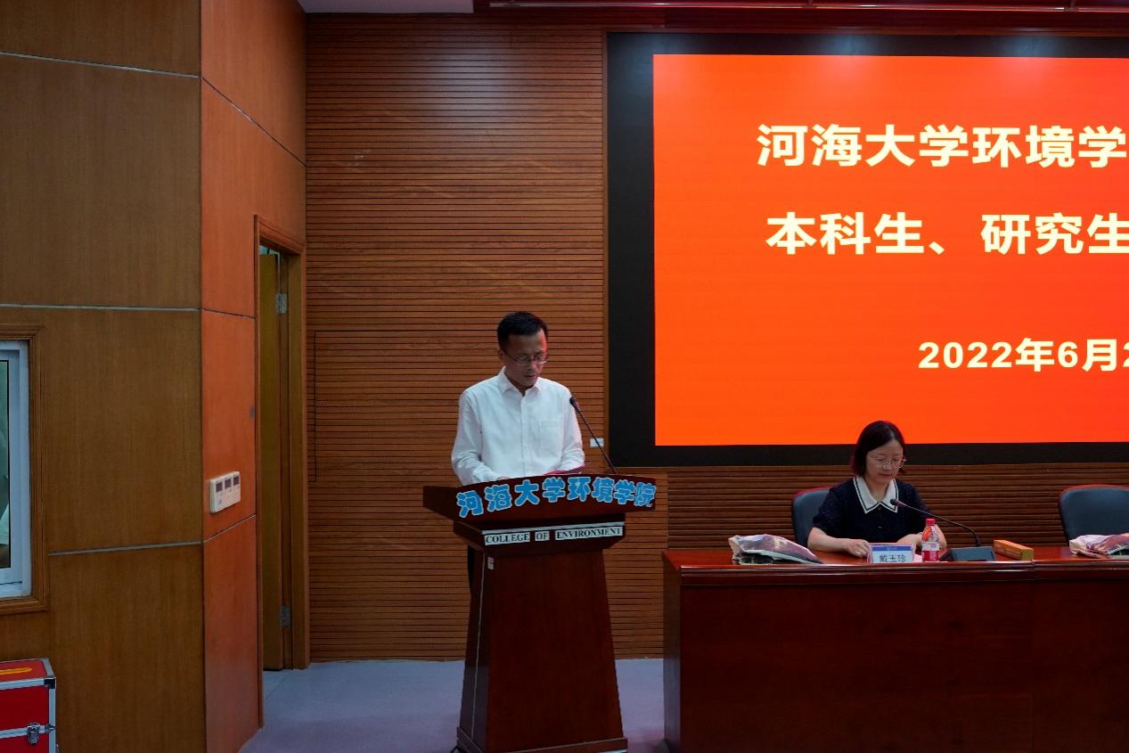 2022年6月22日下午,环境学院毕业典礼在水利馆隆重举行。学院党委书记笪学军、副院长林涛、党委副书记戴玉珍、副院长王华,以及学院的各系主任、班导师和百余名本科毕业生、研究生毕业生欢聚一堂,共同参加本次典礼。