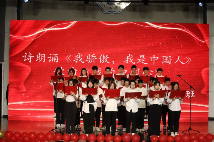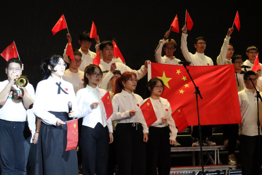22级生态1班带来的《我的中国心》,表达了他们对祖国的刻骨铭心的热爱;21级给排水1班的《我爱你中国》,寄托了他们对祖国海清河晏的祝愿;21级环工1班的《万疆》带我们领略了华夏之壮美与山河之壮阔。