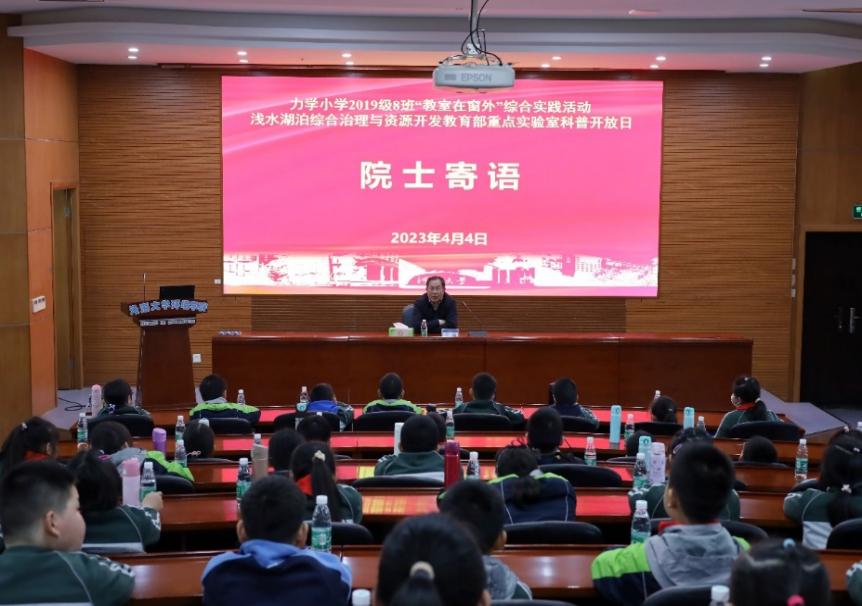 4月4日,河海大学浅水湖泊综合治理与资源开发教育部重点实验室以“节水在我、净水生活”为主题举办科普开放日活动,中国工程院王超院士,河海大学环境学院院长、实验室主任王沛芳教授,南京市力学小学2019级8班的老师、家长和全体同学共同参加活动。