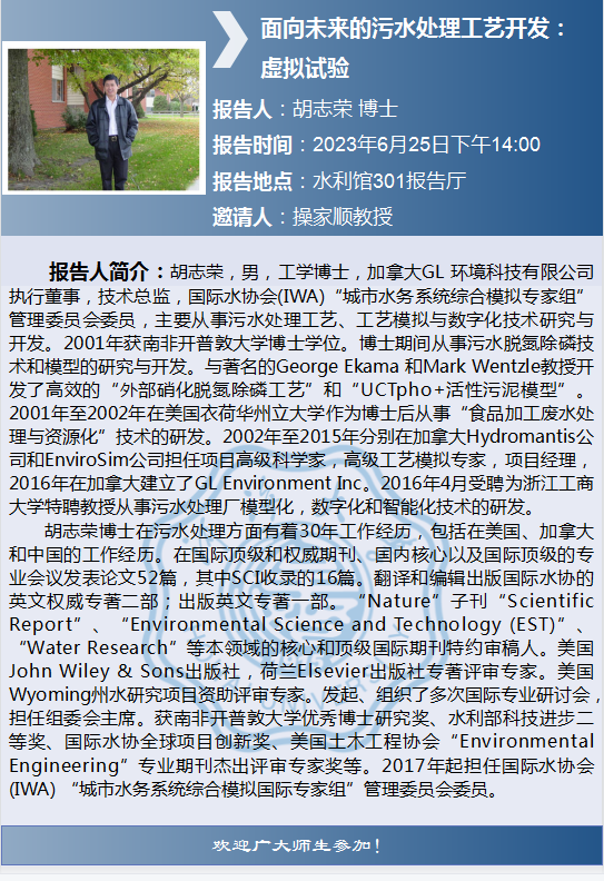 环境学院学术报告:面向未来的污水处理工艺开发:虚拟试验